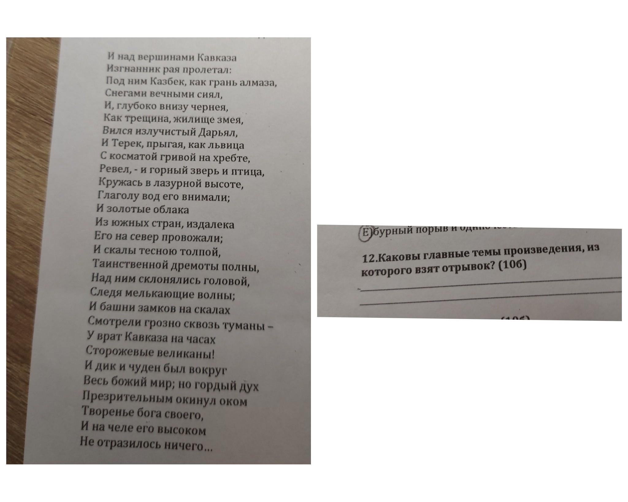 Отрывок из произведения М.Ю.Лермонтова "Демон", главные темы которого - одиночество, противопоставление добра и зла, борьба злого и доброго начал в одном человеке..
