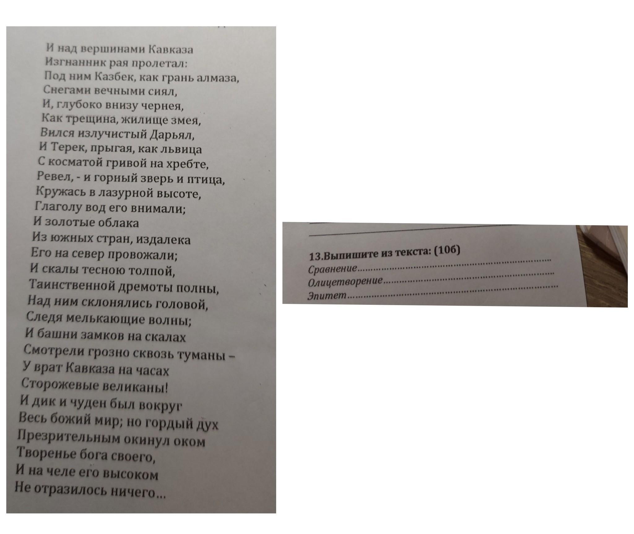 Эпитет: "излучистый Дарьял", "лазурной высоте", "золотые облака".