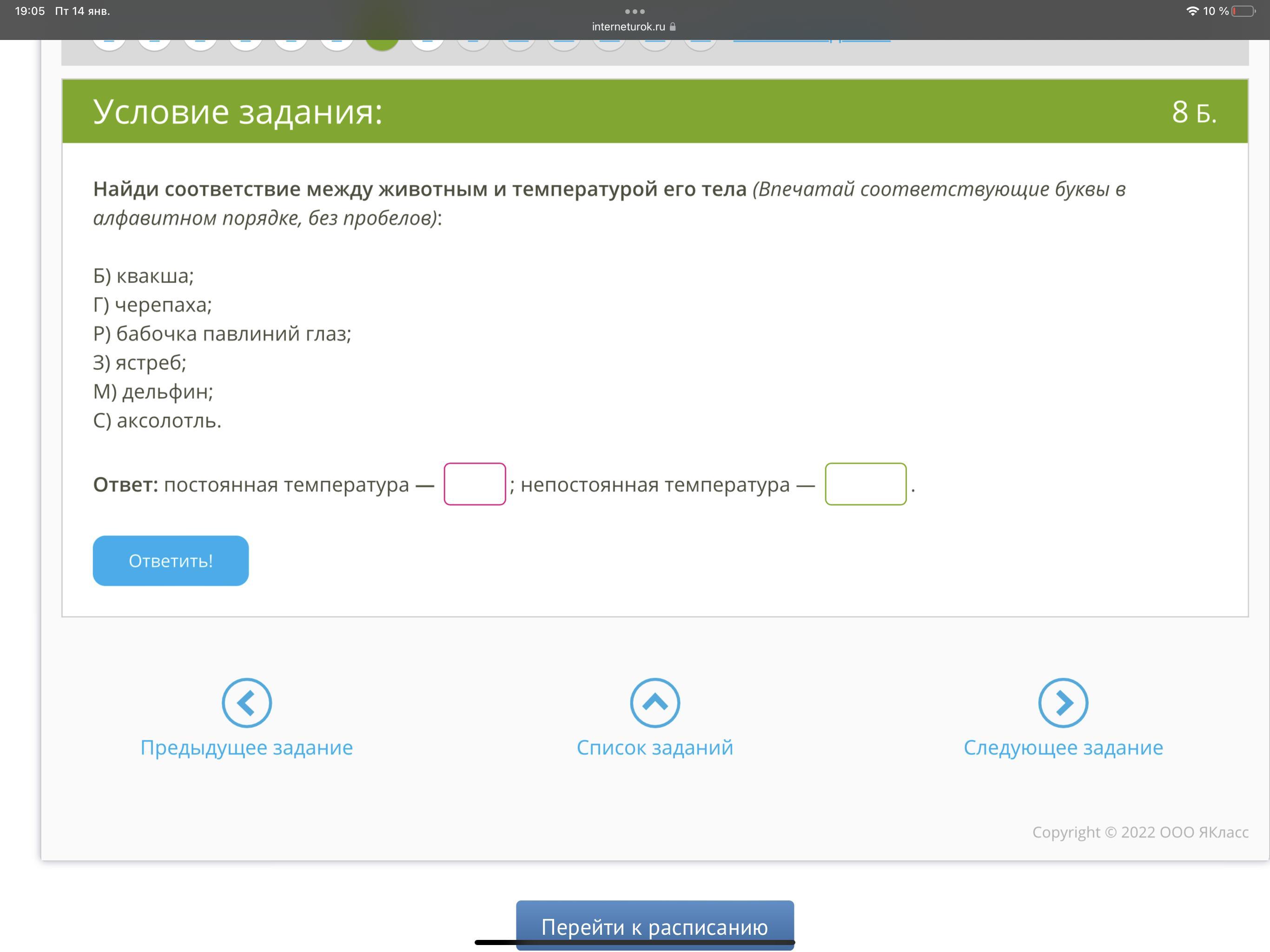 у млекопитающих и птиц - постоянная температура тела (теплокровность), у всех остальных - непостоянная (холоднокровные животные).
