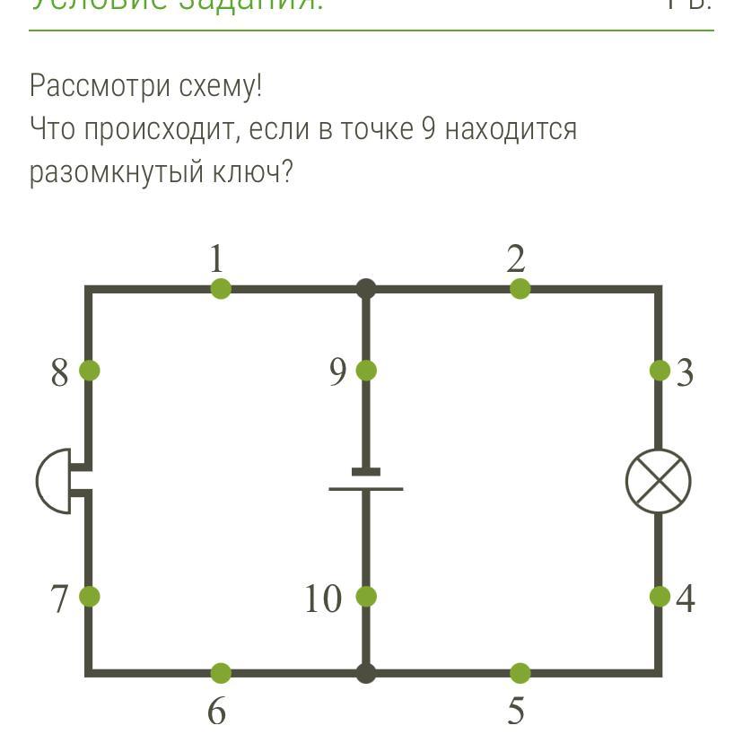 Что происходит, если в точке 9 находится разомкнутый ключ?