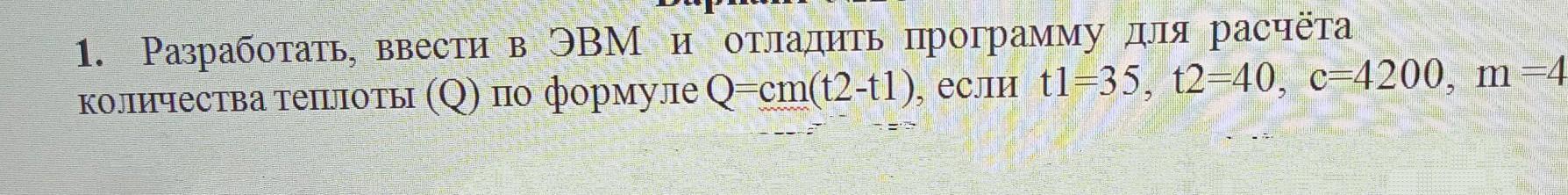 На вход получаем параметры t1, t2, c, m (если они уже даны, то просто присваиваем значения соответствующим переменным).