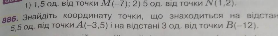 Знайдіть координату точки, що знаходиться на відстані 5,5 од. Від точки А(-3,5) і на відстані 3 од. від точки B(-12).