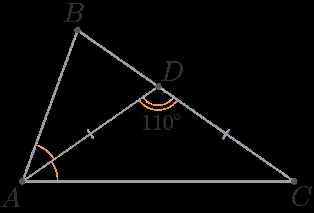 Так как ΔADC равнобедренный, то ∠DАC=∠DСA=(180°-110°)/2=35°
