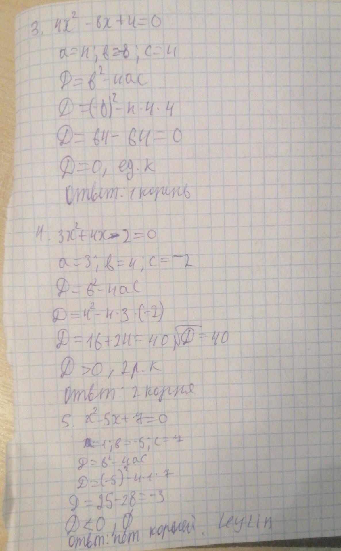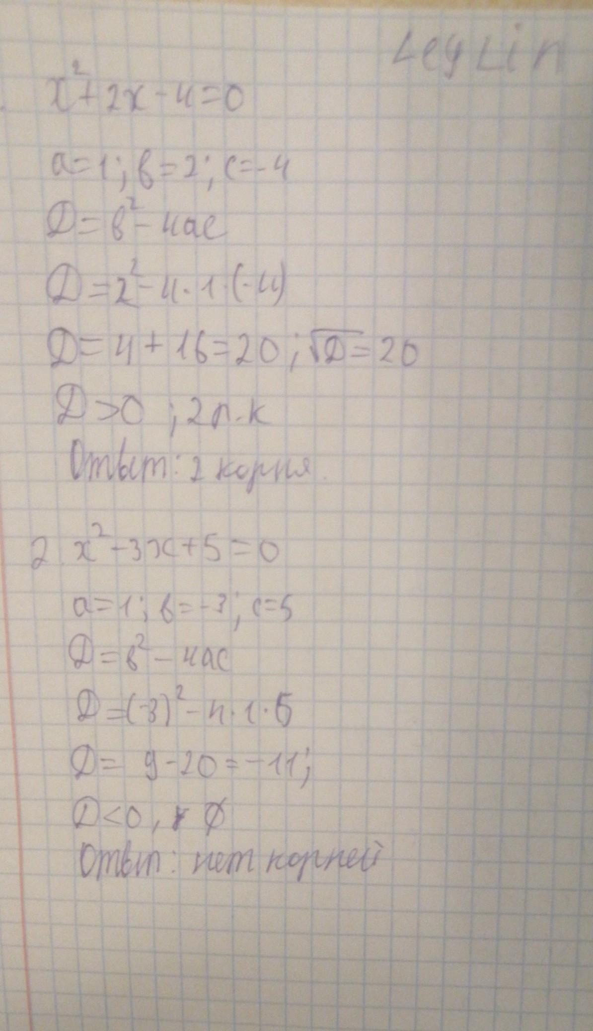 Если Д>0 2 корня, если Д=0 1 корень, если Д<0 корней нет.(Д=b²-4ac). Подставляй и отвечай.