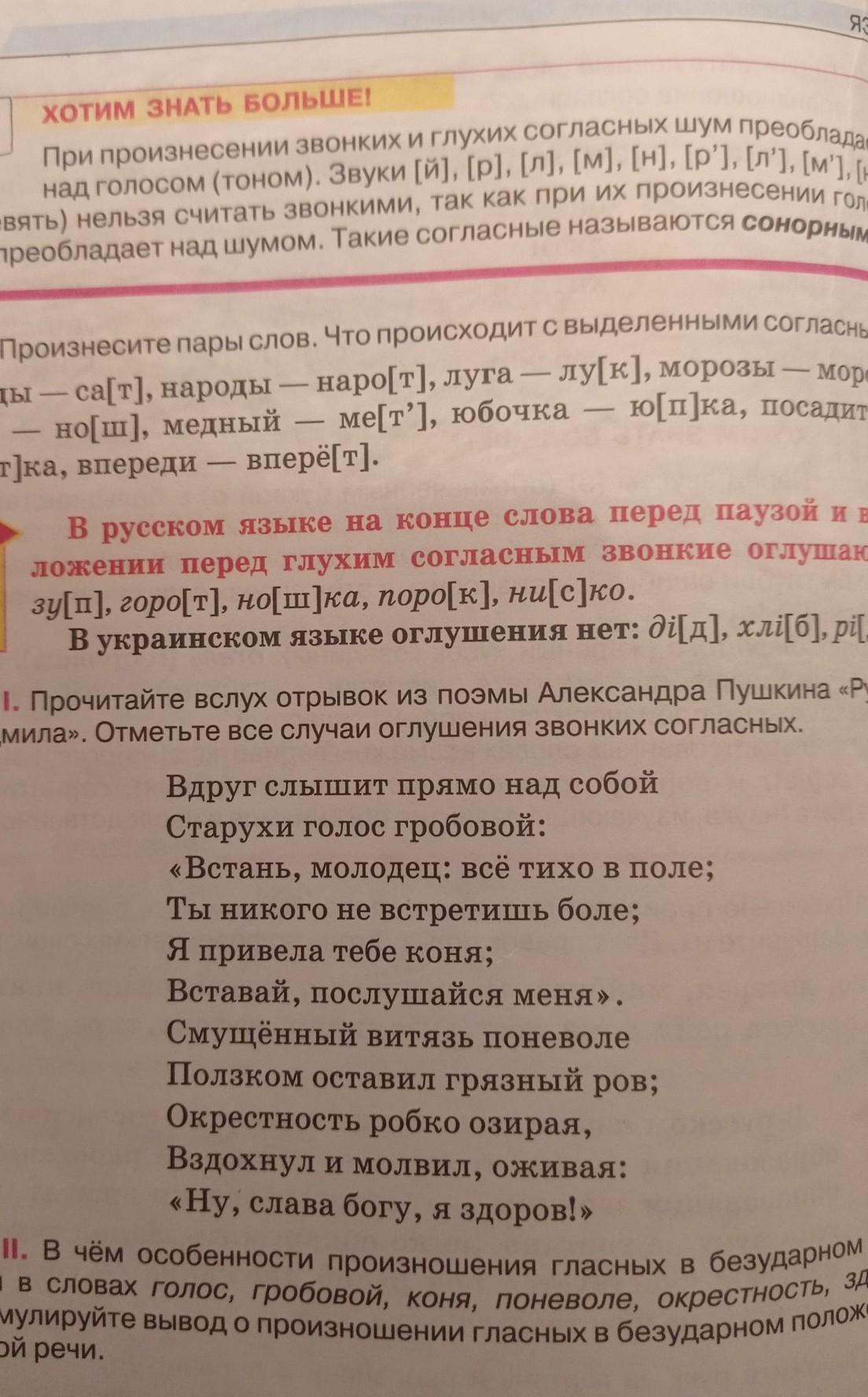 Вдруг (вдрук), над (нат), гробовой (гроповой), в (ф), вставай (фставай), витязь (витясь), ползком (полском), ров (роф), робко (ропко), здоров (здороф)