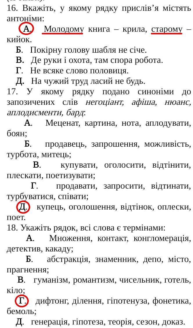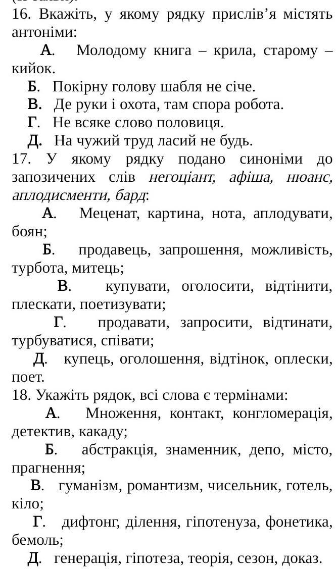 Завдання 8 – 23 мають по п’ять варіантів відповідей, із яких лише одна правильна. Позначте правильну відповідь у бланку згідно з інструкцією.