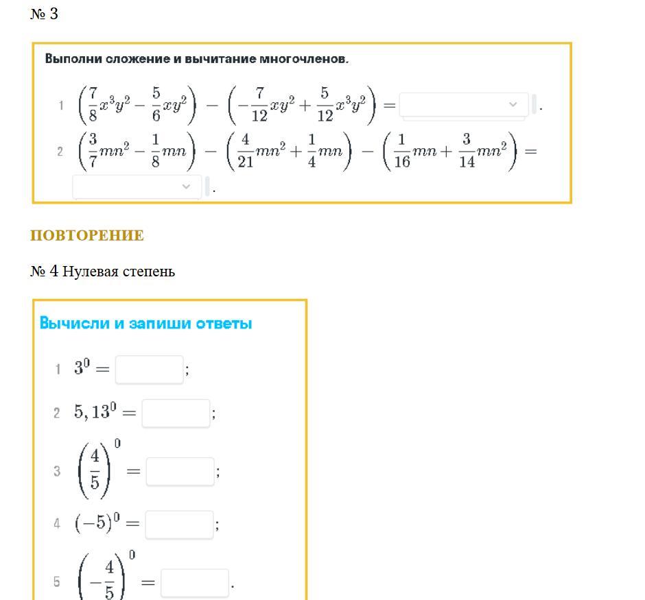 4. в четвертом задании все ответы 1 т.к. нулевая степень любого, кроме нуля, числа равна единице.