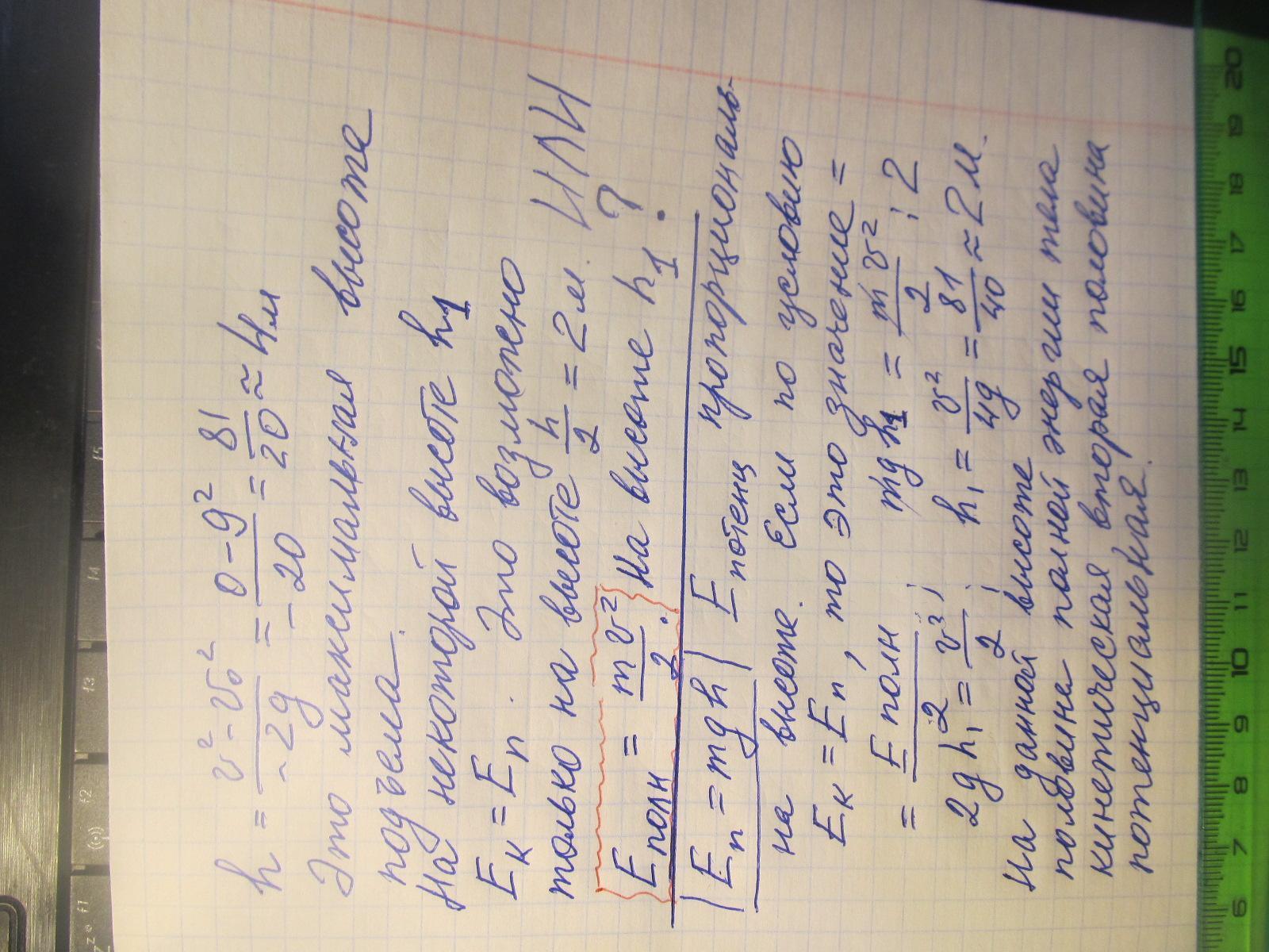 Камень брошен вертикально вверх со скоростью 9 м/с. На какой высоте кинетическая энергия камня
