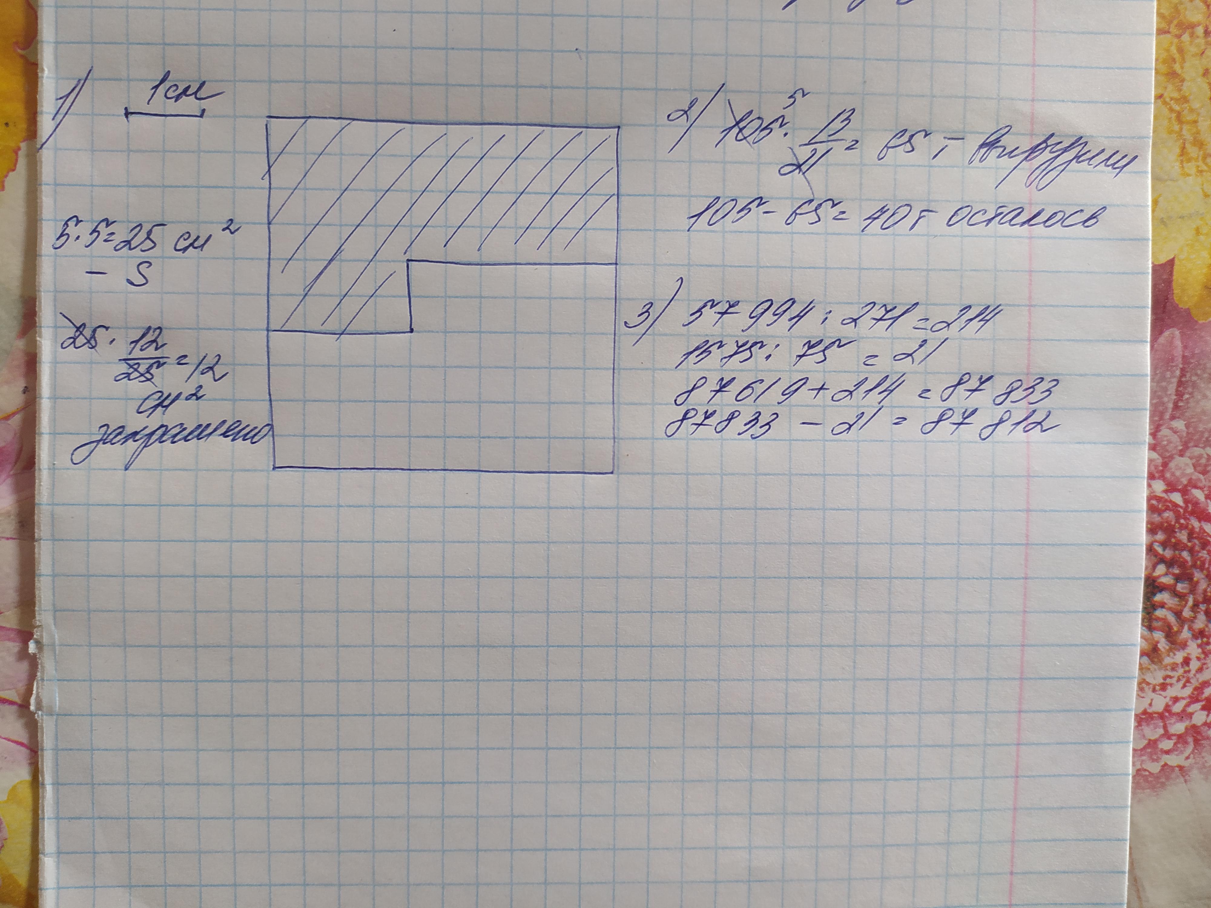 На фото : делим на 25 квадратиков и закрашиваем 12 квадратиков