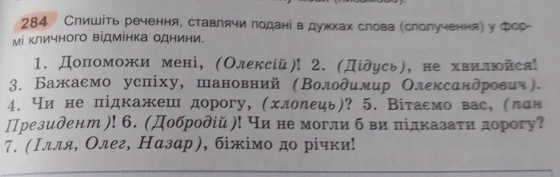 1.Олексію 2.Дідусю 3.Володимиру Олександровичу 4.Хлопую 5.Пане Призеденте 6.Добродію 7.Іллю, Олегу,Назаре