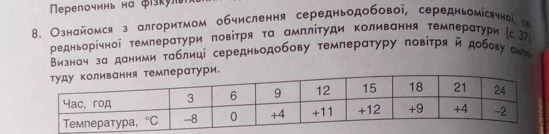 - 8 + 0 + 4 + 11 + 12 + 9 + 4 - 2) : 8 = 3,75° С