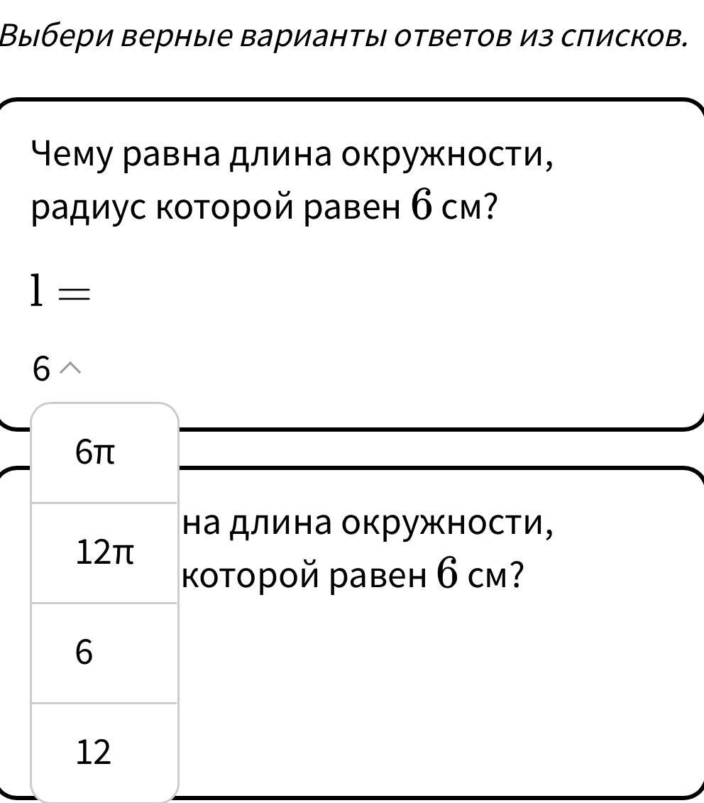 l = 2Пr 2п= 6.28 и * r = 6 == 37.68