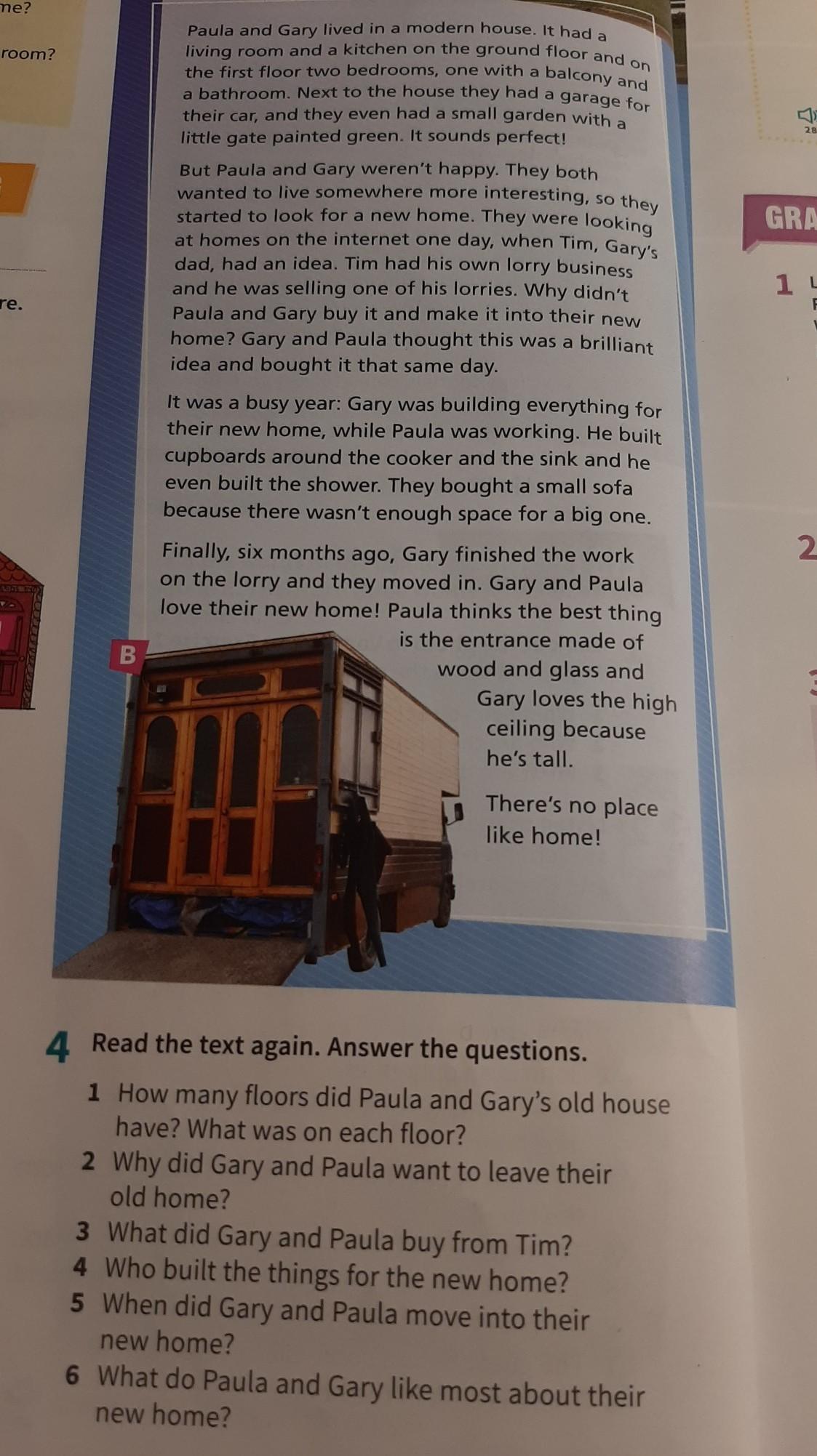 6) paula thinks the best thing is the entrance made of wood and glass and Gary loves the high ceiling