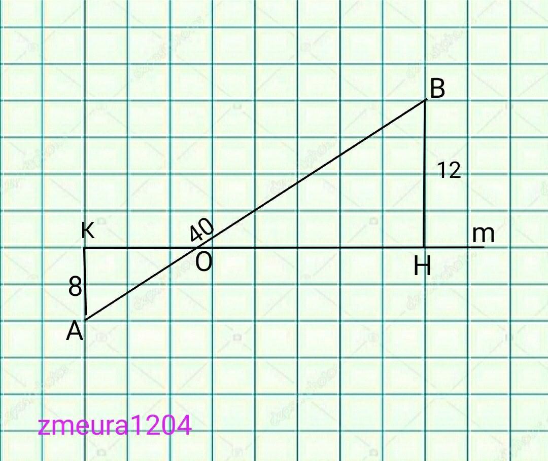 Відрізок АВ довжиною 40 см перетинає площину альфа в точці С. Відстані від точок А і В до площини альфа відповідно дорівнюють 8 см і 12 см. Знайди кут, який утворює пряма АВ з площиною альфа.