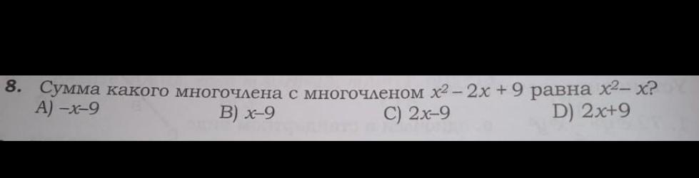 сумма какого многочлена с многочленом x²-2x+9 равна x²-x?