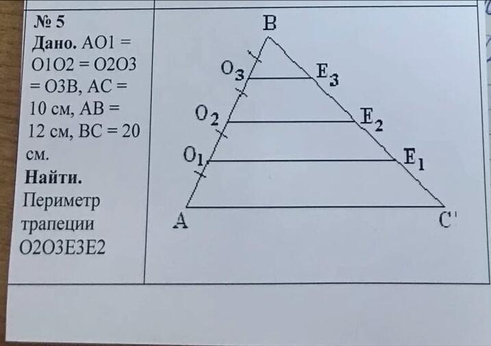 ао1 = о1о2 = о2о3 = о3в ас 10 см ав 12 см вс 20 см