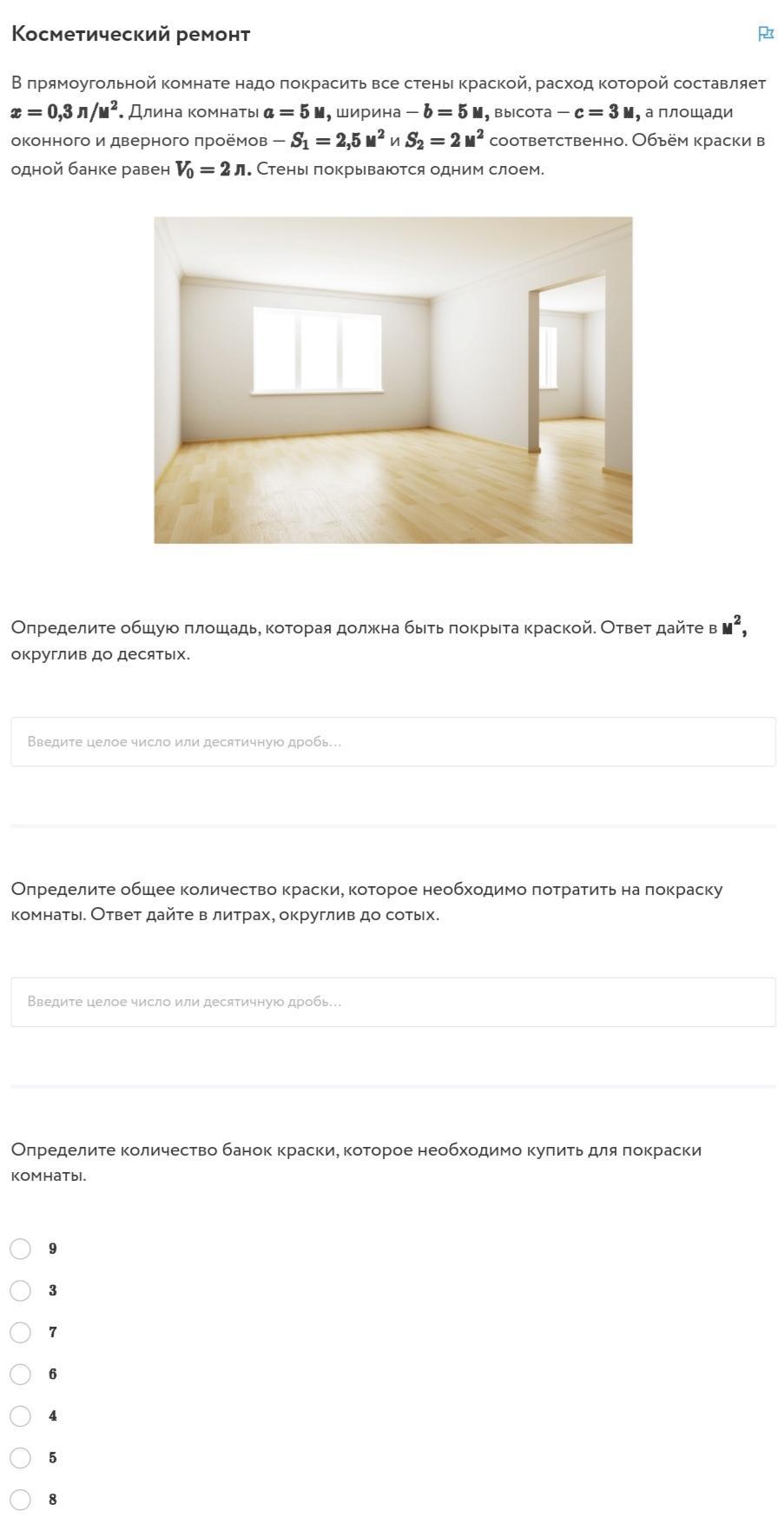 площадь которую необходимо покрасить, это 4 стены . так как длина и ширина равны, то площадь каждой стены равна
