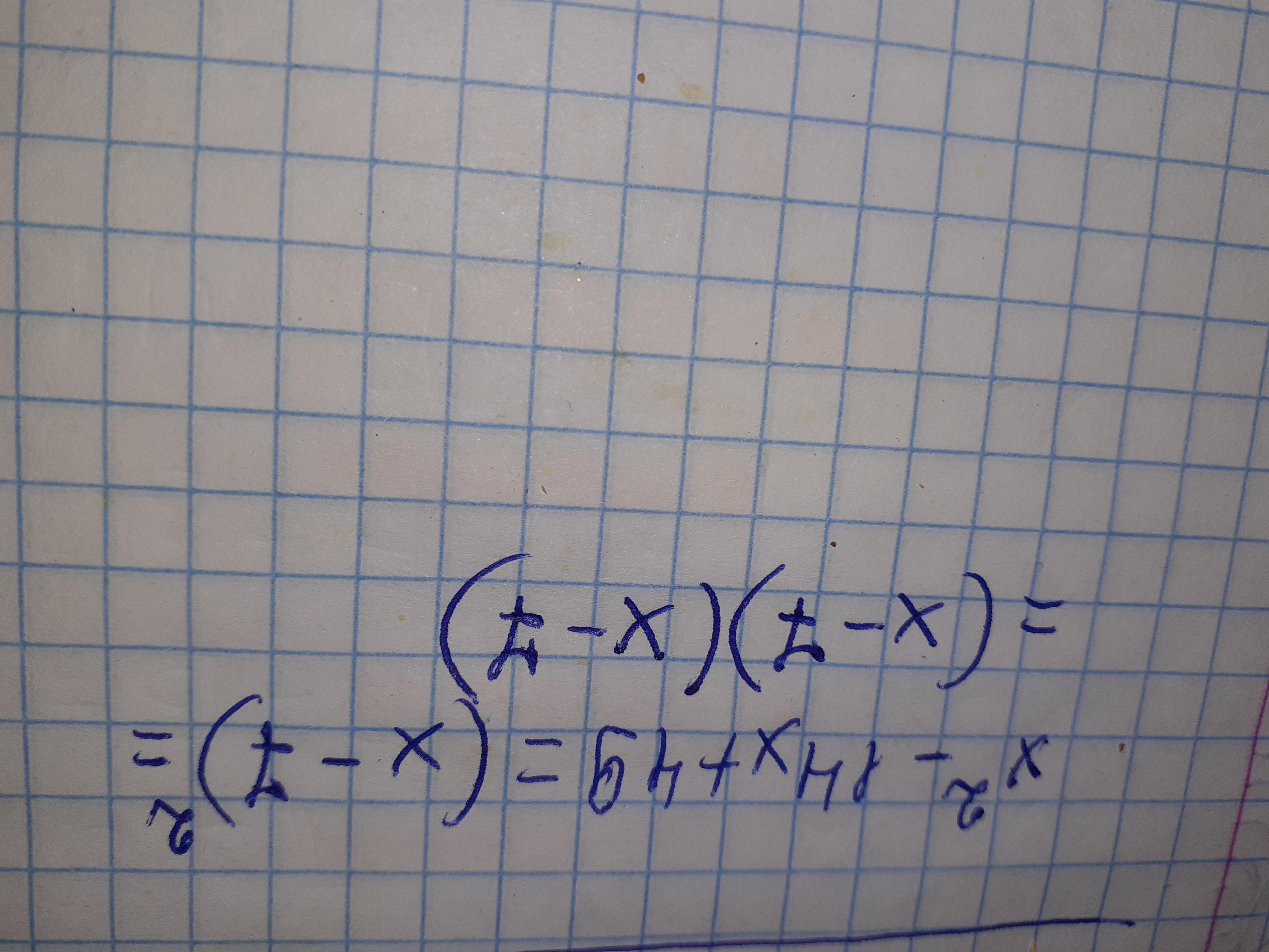 Тричлен x2−14x+49 можна записати у вигляді добутку двох множників. Якщо один множник дорівнює (x−7), то чому дорівнює другий множник? Обери правильну відповідь: