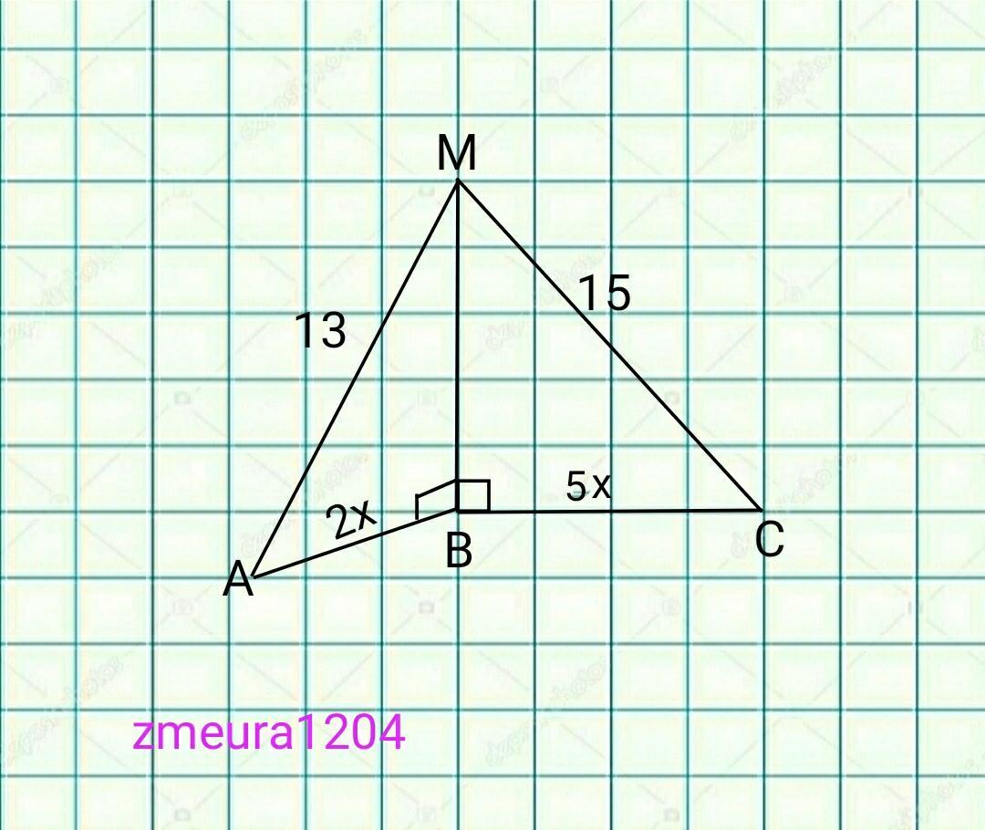 Из точки М к плоскости проведены две наклонные , длины которых 13 см и 15 см. Их проекции на эту плоскость относятся как 2:5. Найдите длины проекций этих наклонных.