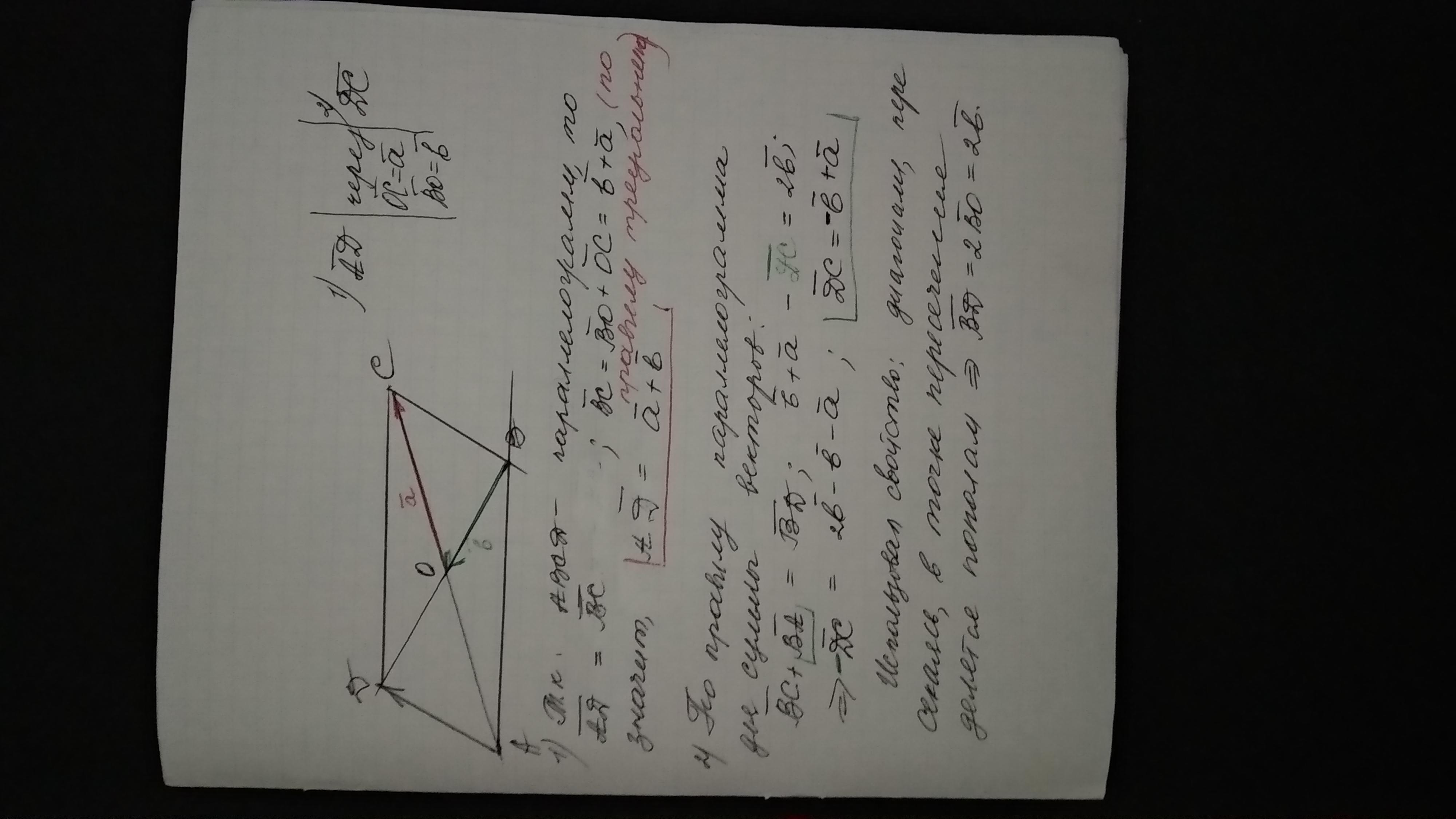Диагонали параллелограмма ABCD пересекаются в точке O. Выразите векторы ad и vector dc через векторы vector oc = a и vector bo = b(вектор). Выполните рисунок к заданию.