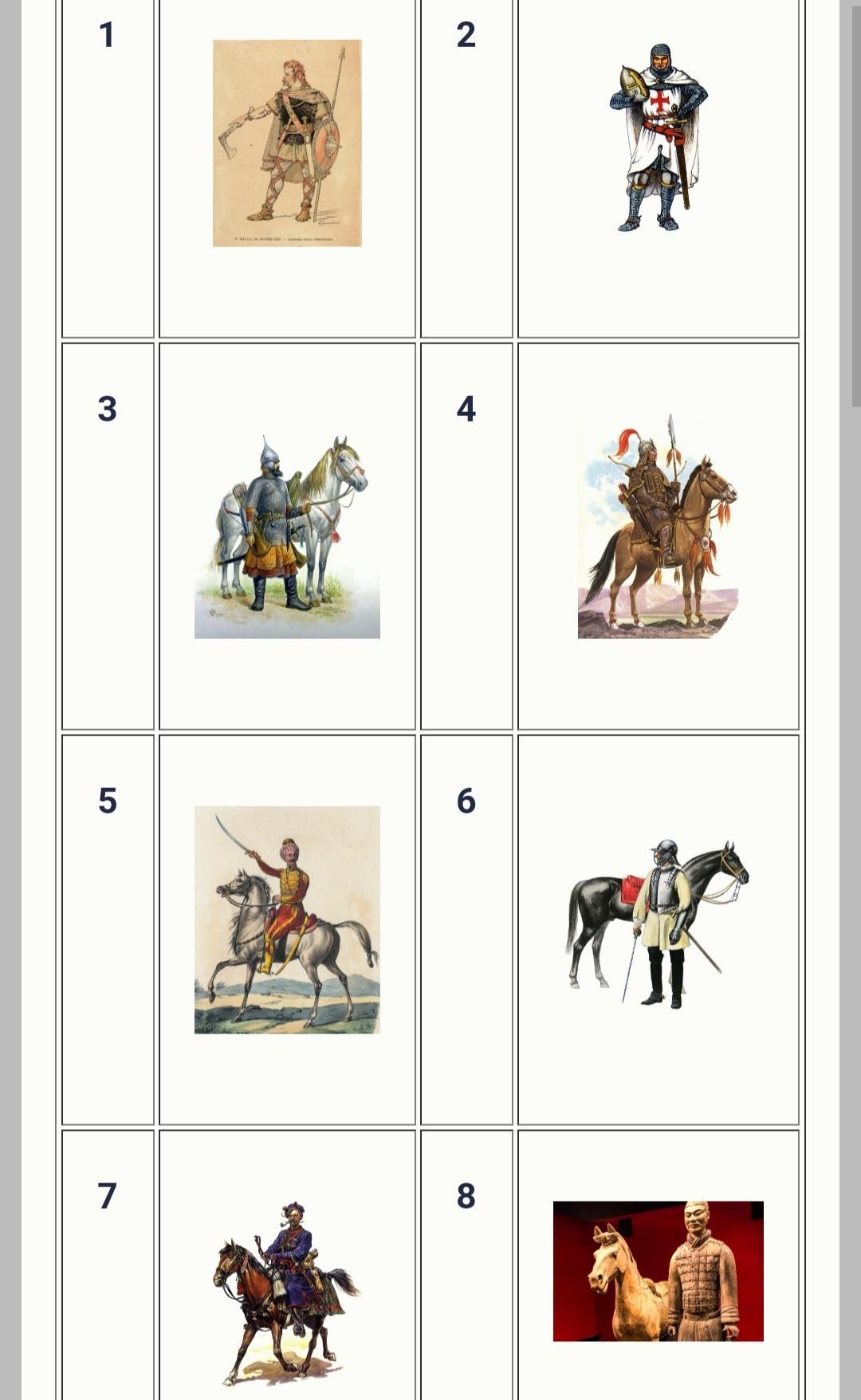 1: Хлодвиг; 2: Ричард Львиное Сердце; 3: Мстислав Изяславич; 4: Субэдэй; 5: Сулейман II; 6: Оливер Кромвель; 7: Богдан Хмельницкий; 8: Цинь Шихуанди.