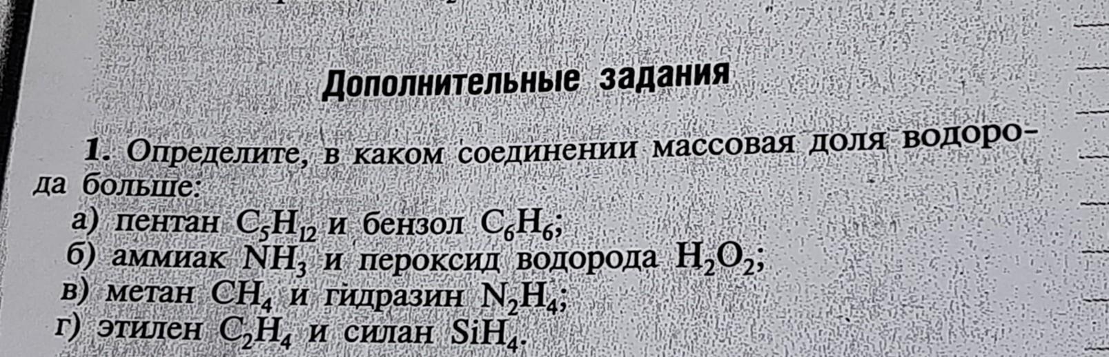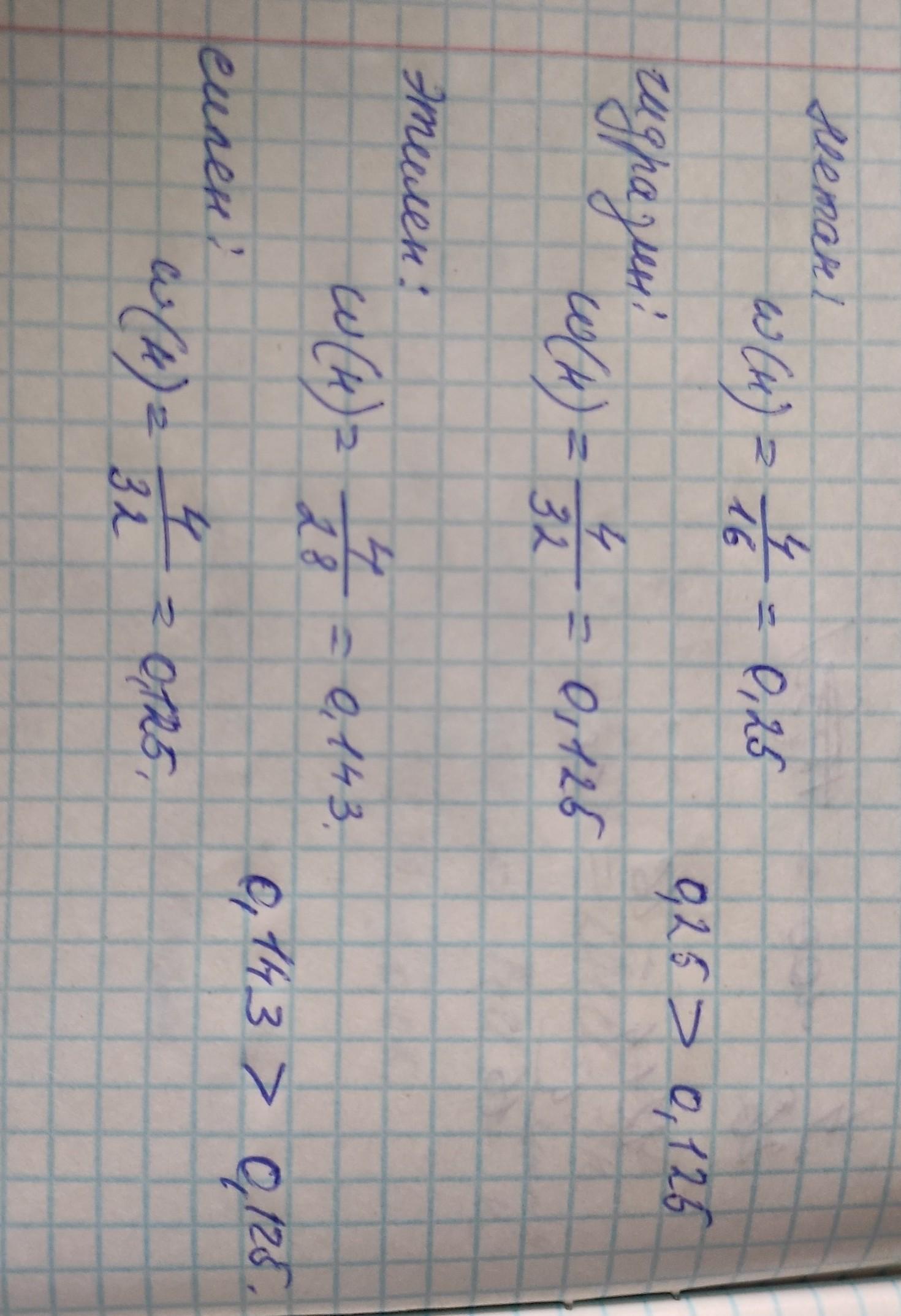 помогите пожалуйста , определите в каком соединении массовая доля водорода больше