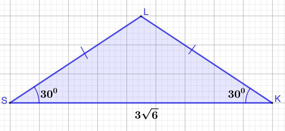 Реши равнобедренный треугольник LKS LKS, если углы при основании равны 30°, а длина основания KS = 3корня из 6