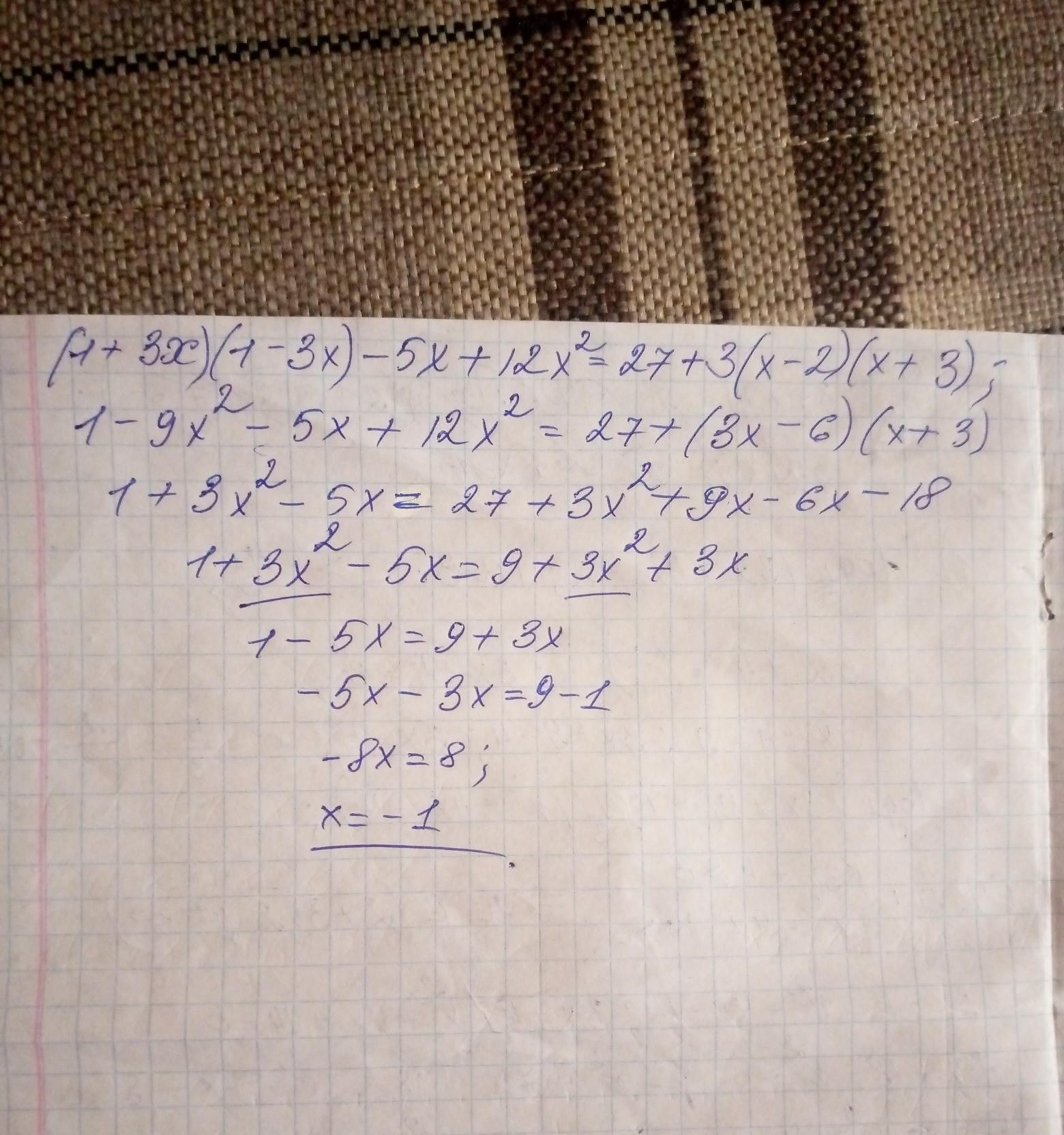 1-9х²-5х+12х²=27+(3х-6)(х+3)