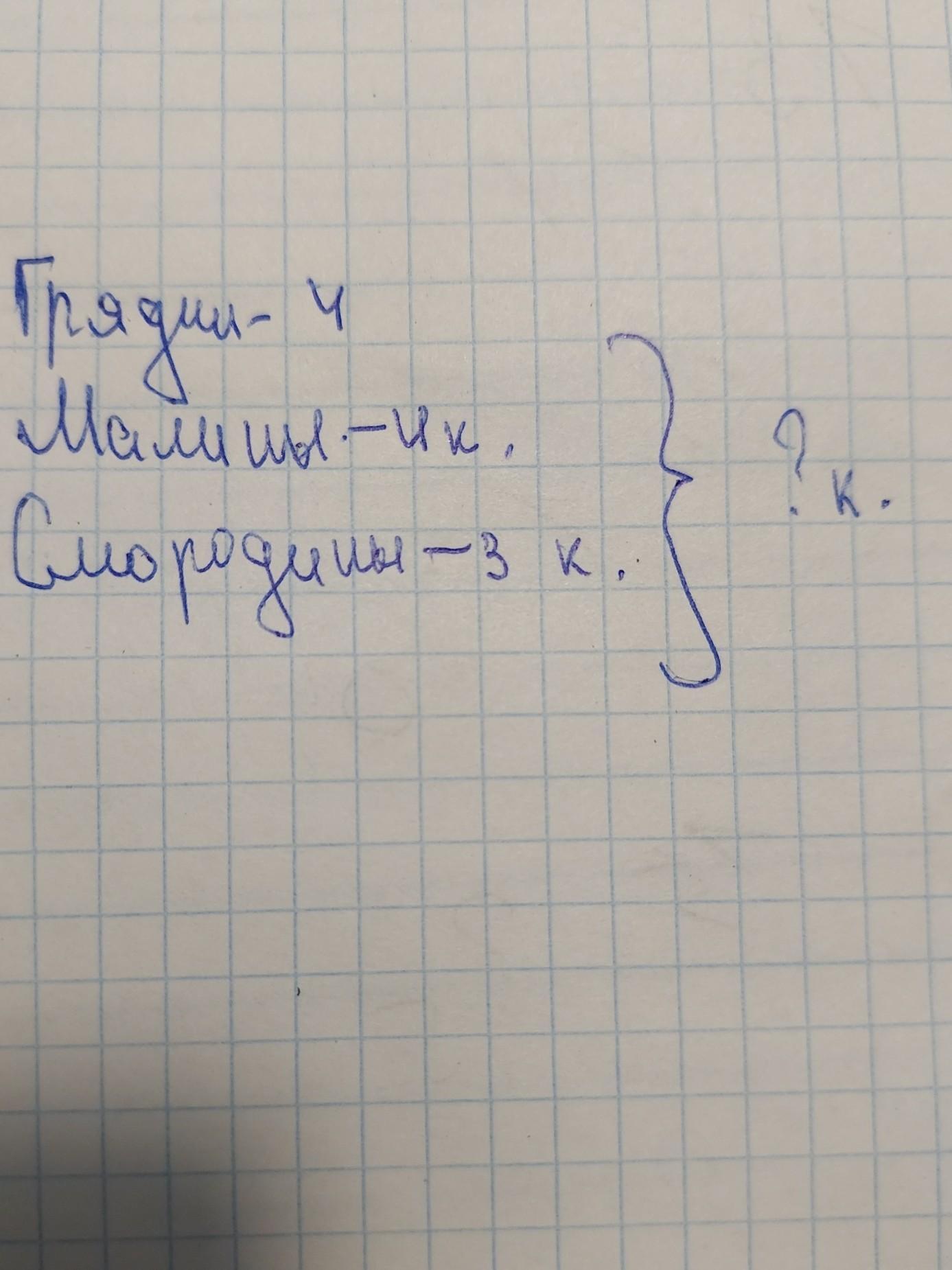 Решите пожалуйста задачу, с условием если не сложно. На 4 грядках росло по 3 куста смородины и по 4 куста малины. Сколько кустов ягод росло всего?