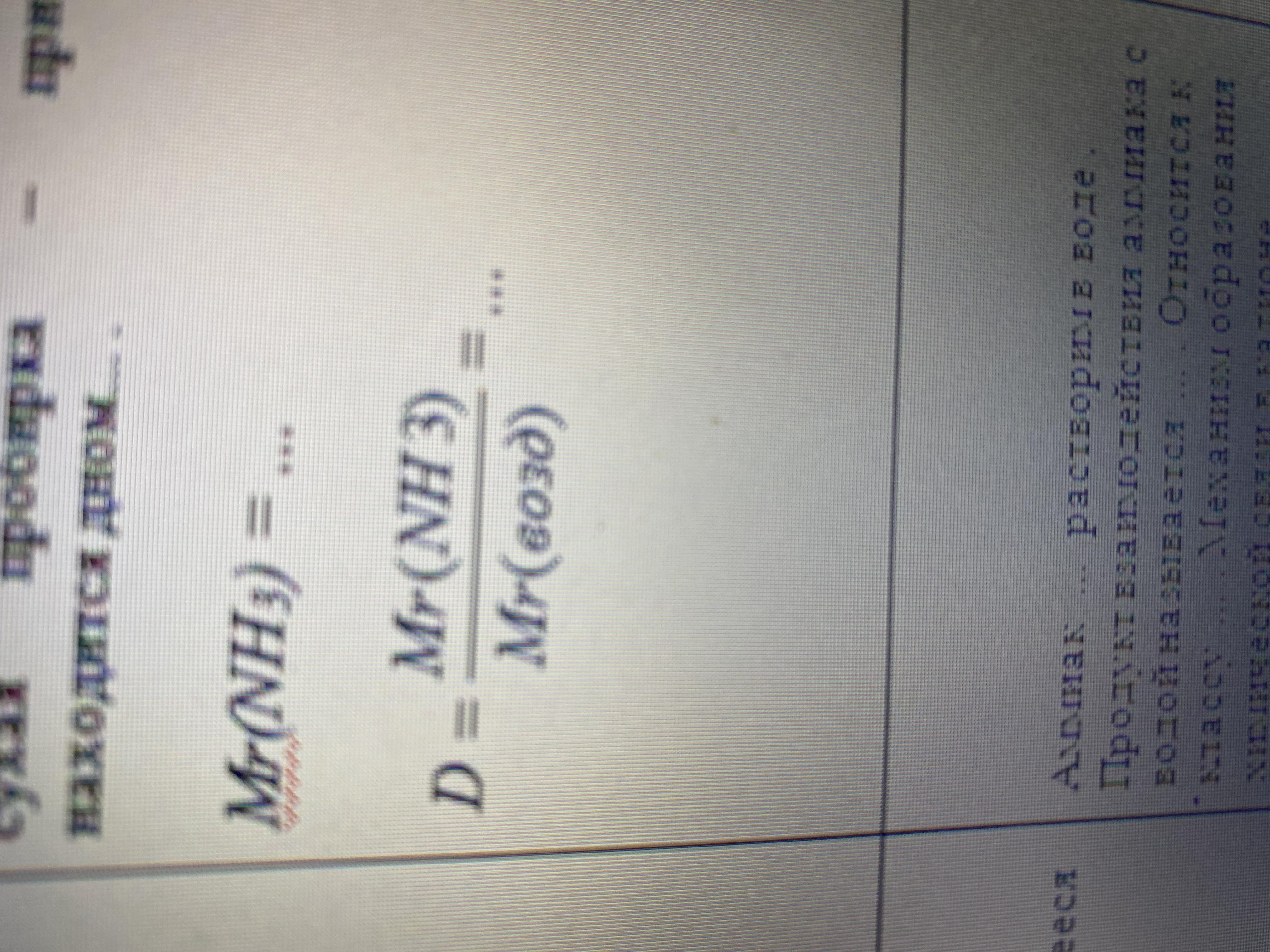 относительная плотность газа аммиака по воздуху будет: