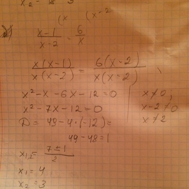 Приводим к общему знаменателю х*х-х-6х+12/х(х-2)