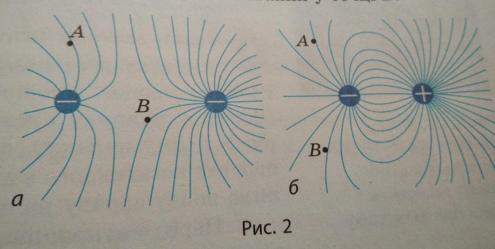 На рис 2. зображено лінії електричних полів, створених двома різними за модулем зарядами.