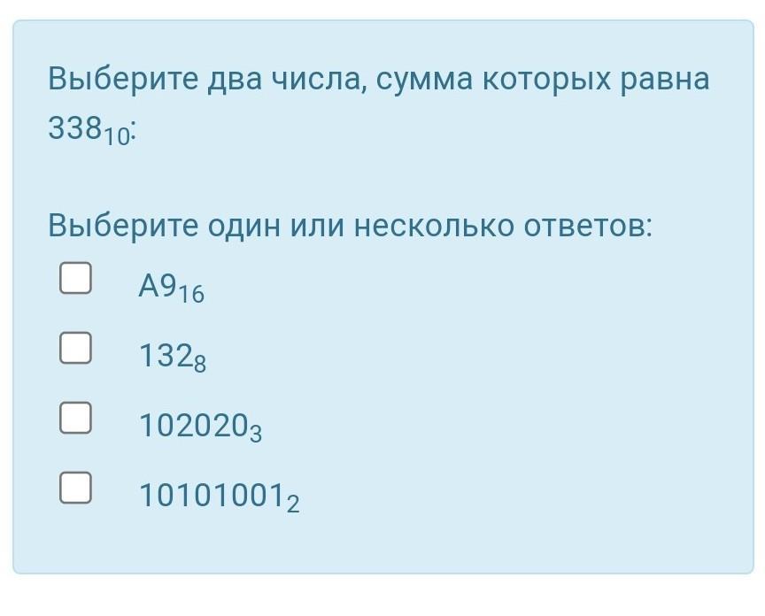 10101001₂ = 1∙2⁷+0∙2⁶+1∙2⁵+0∙2⁴+1∙2³+0∙2²+0∙2¹+1∙2⁰ = 128+0+32+0+8+0+0+1 = 169₁₀