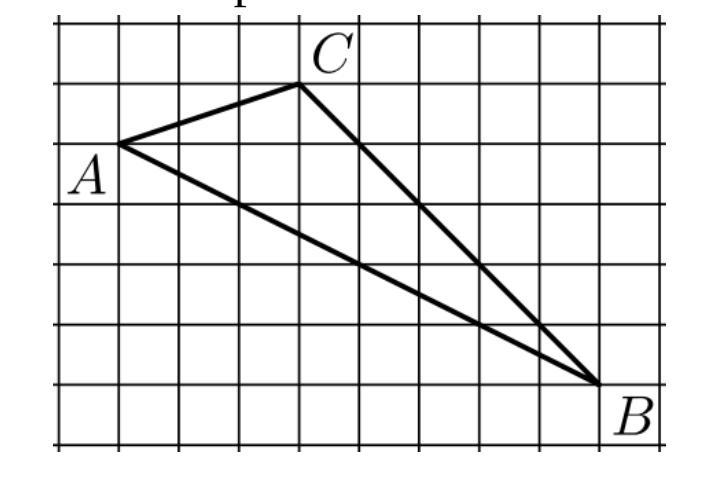 На клетчатой бумаге с размером клетки 1 × 1 изображён треугольник ABC. Во сколько раз сторона AB больше высоты, проведённой к этой стороне?