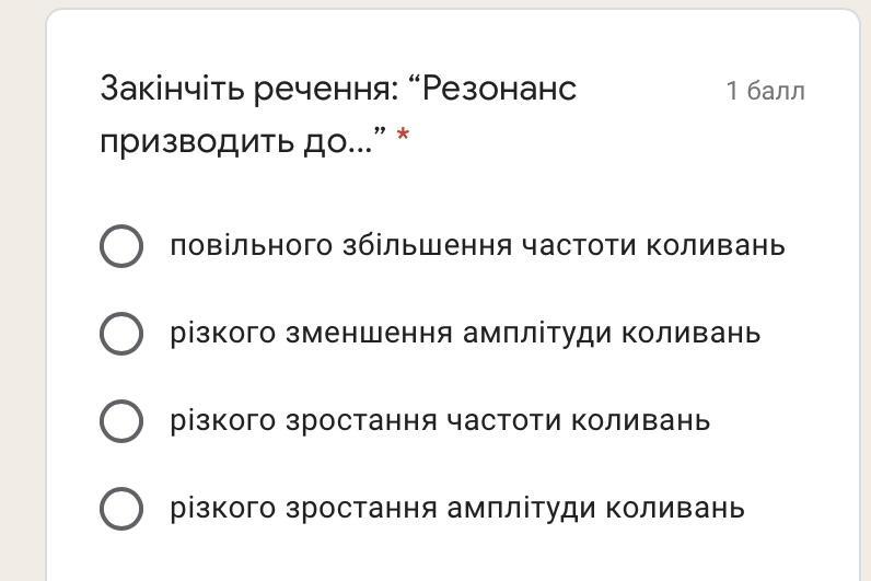 Резонанс - частотно-избирательный отклик колебательной системы на периодическое внешнее воздействие, который проявляется в резком увеличении амплитуды стационарных колебаний.