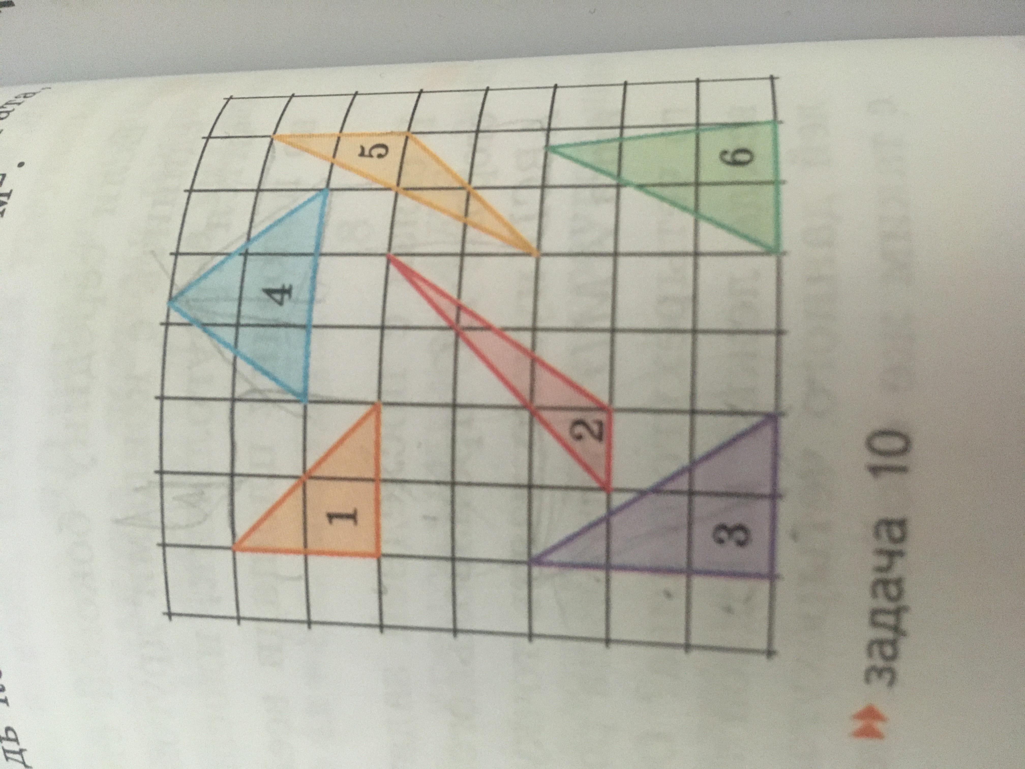 Каждый из треугольников на рисунке обозначен своей цифрой. Напишите все пары цифр, которые соответствуют на нём треугольниках равной площади. В клетках.