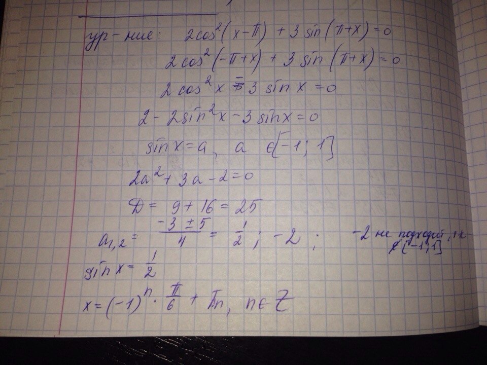Решите уравнение : 2cos^2(x-п)+3sin (п+x) =0