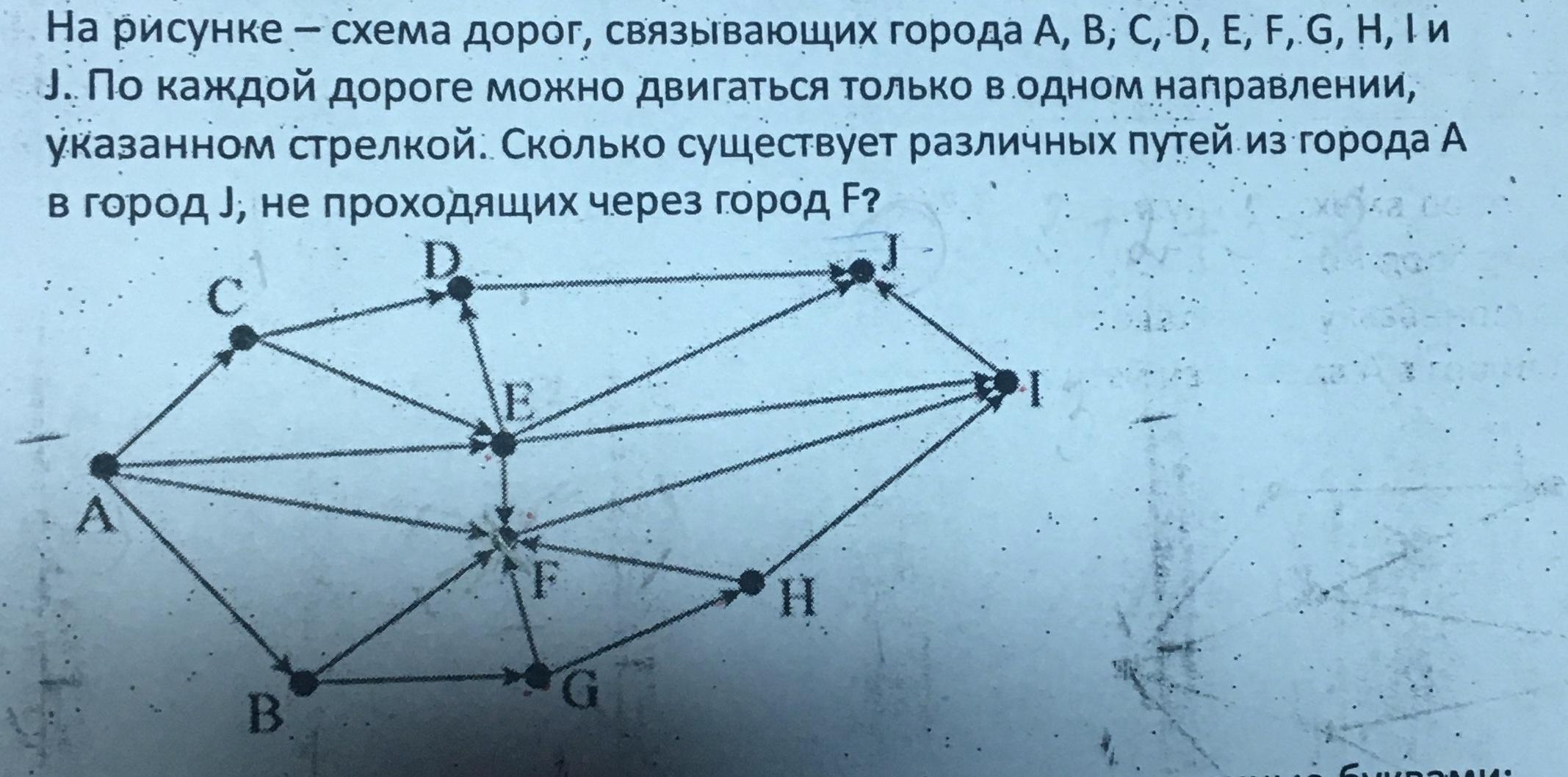 в точку Е идет 2 дороги, в D - 3 дороги. из I 2 дороги