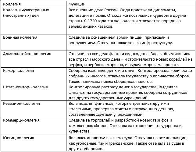 Помогите с табличкой "Деятельность коллегий" Название коллегий и её функции!! Зарание спасибо!!!))*