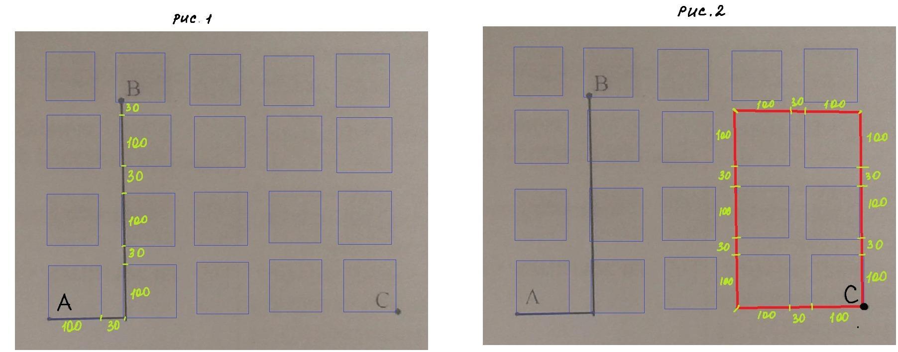 1) Найдите длину пути от точки А до точки В,