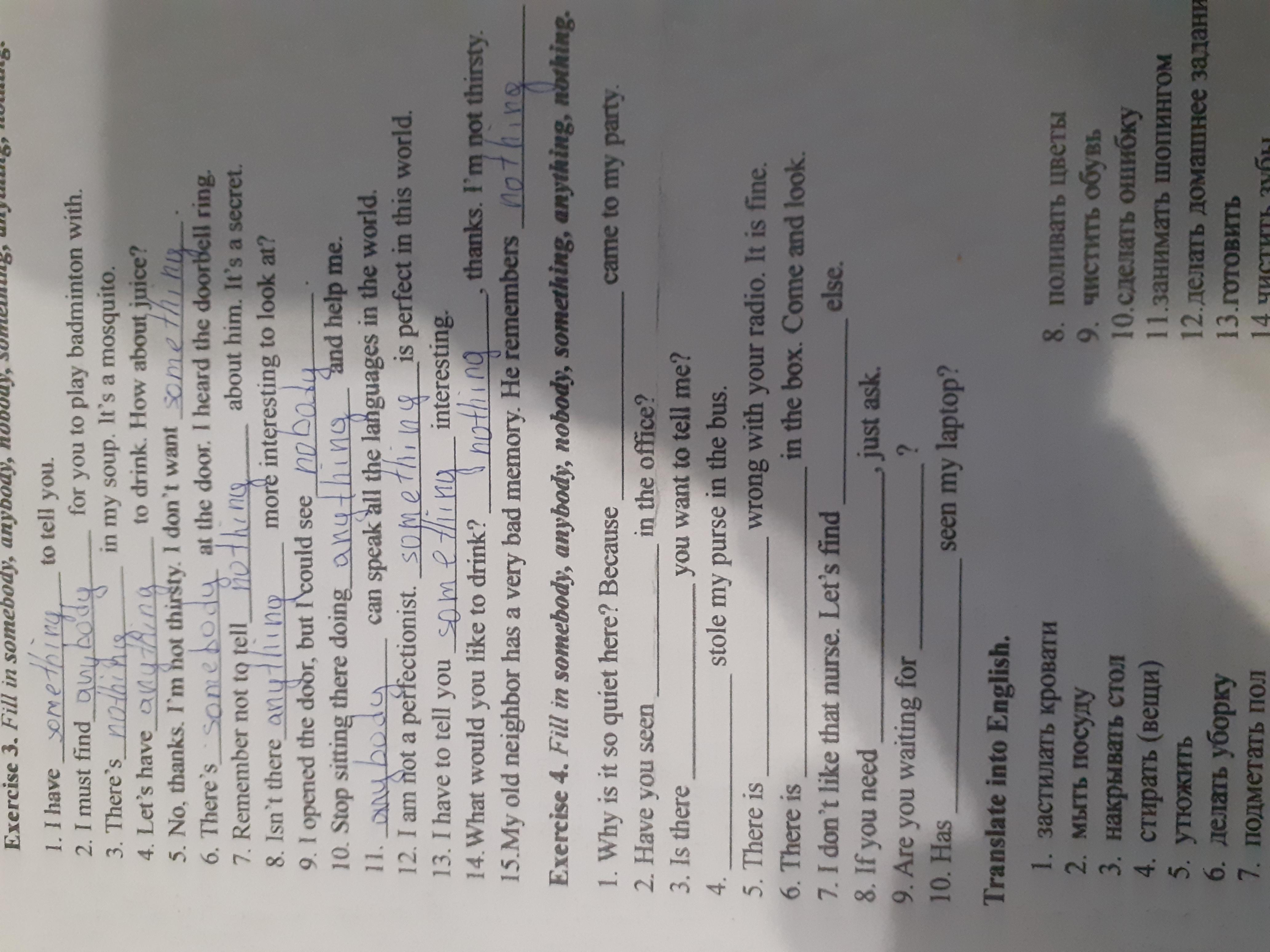 Помогите пожалуйста сделать 4 задание что вставить somebody, anybody, nobody, something, anything, nothing