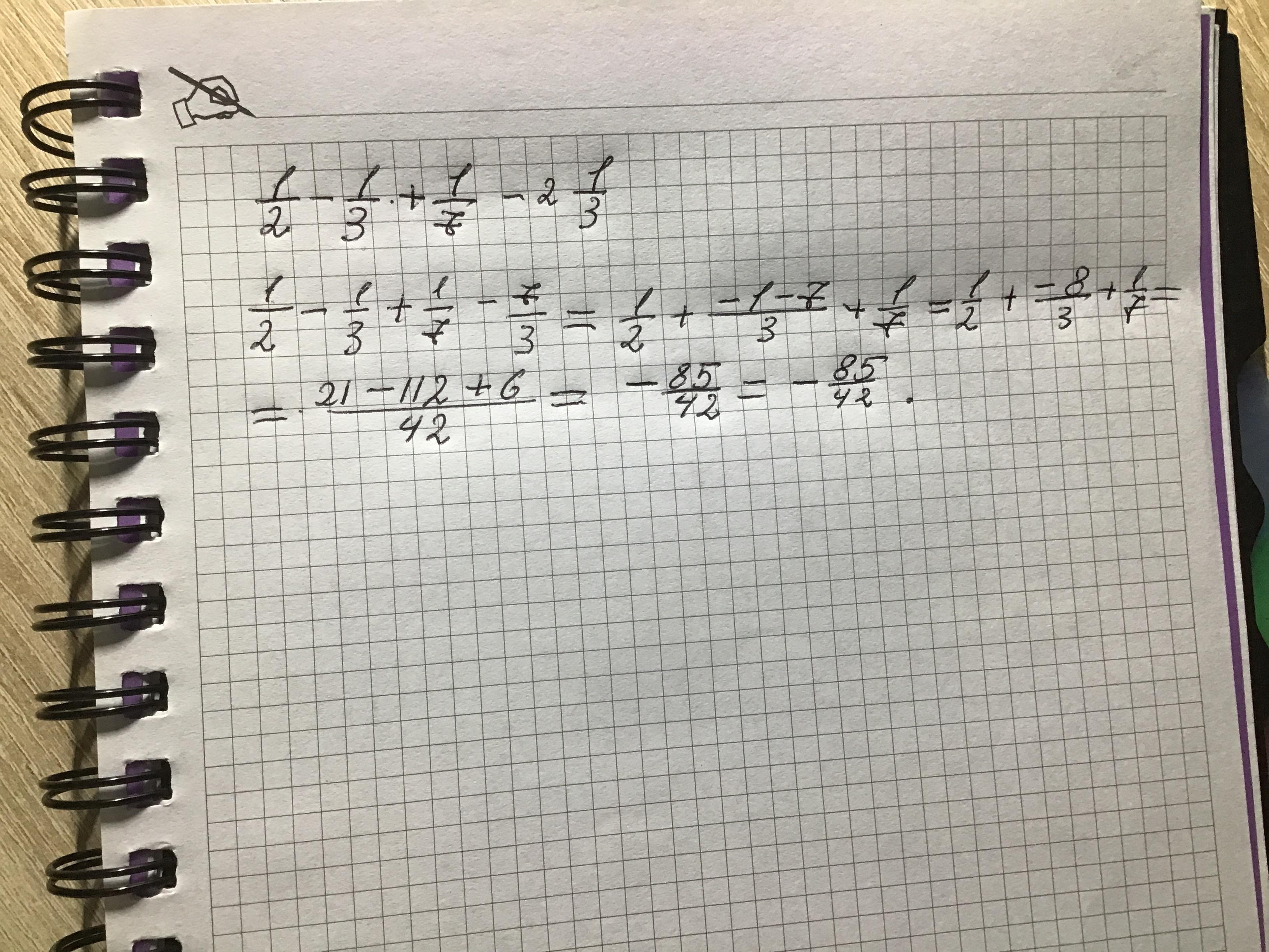 2—записать все числители над общим знаменателем потом вычислить разность потом записать все числители над наименшым общим знаменателем.
