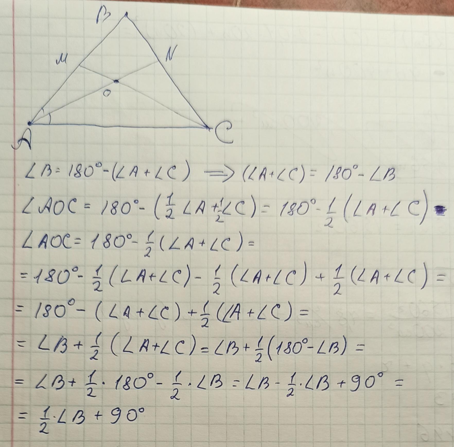 У трикутнику ABC бісектриси кутів А і С перетинаються в точці О