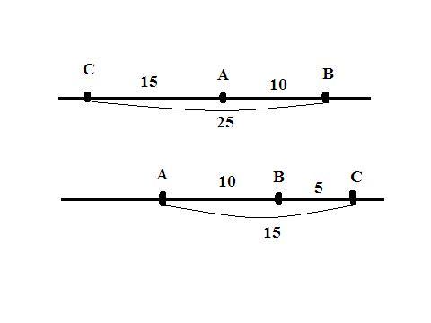 1. точка С лежит левее отрезка АВ. Тогда ВС=10+15=25 см;