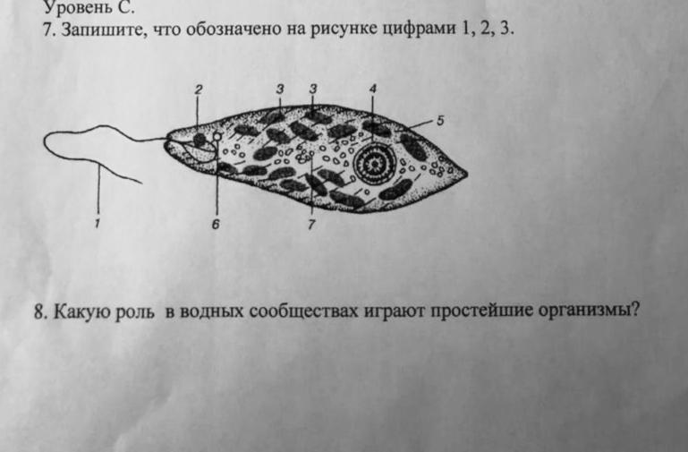 7. 1-Жгутик, 2-Глазок, 3-хлоропласты