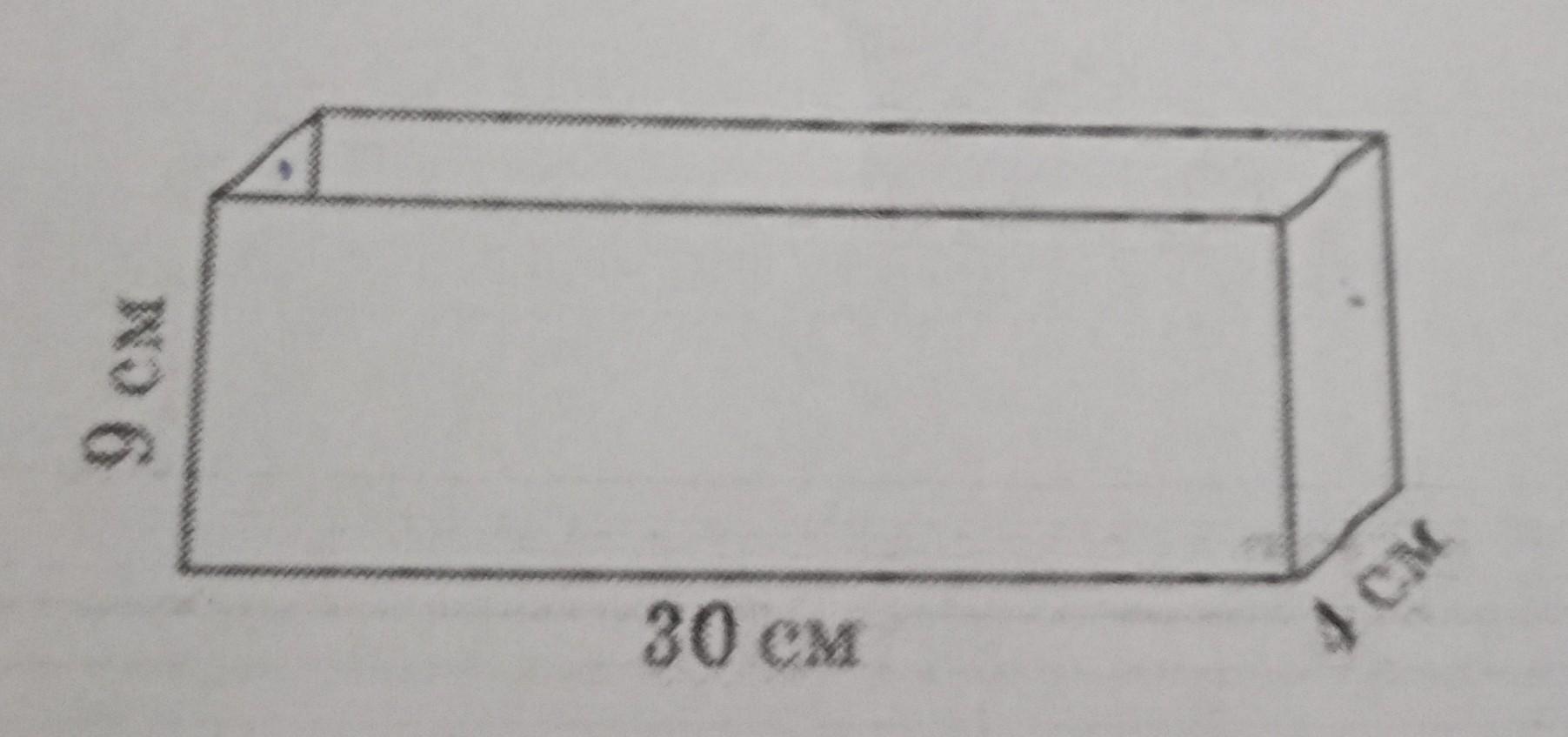 S п. п. = 2*(ab+bc+ac)=2*(30*4+4*9+30*9)=2*426= 852 см² - площадь поверхности прямоугольного параллелепипеда.