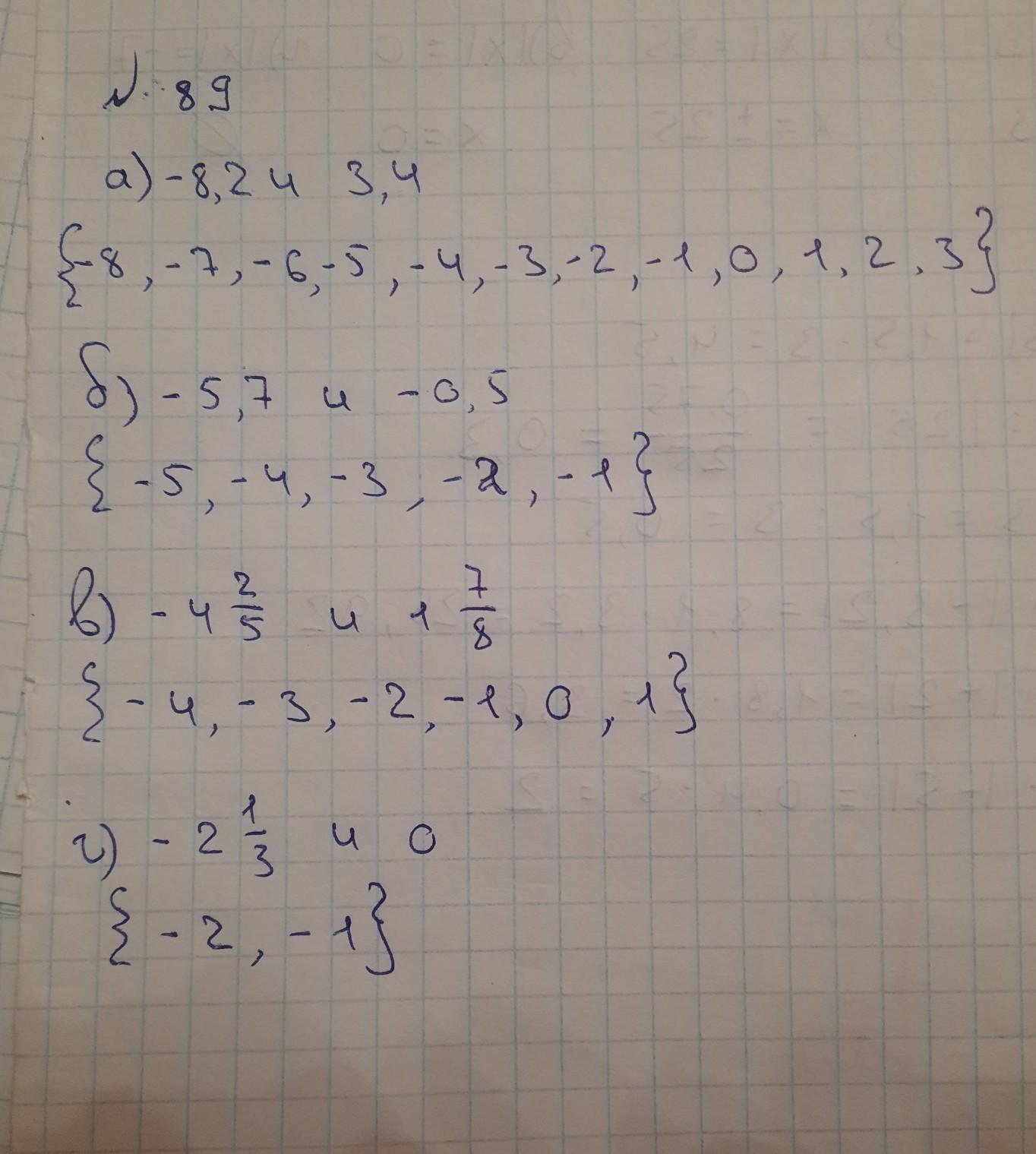 в) = -4; -3; -2; -1; 0; 1;
