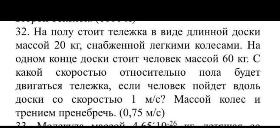 Центр тяжести системы человек - тележка останется на месте. Человек в три раза тяжелее тележки , значит если относительно неподвижного пола человек пойдет со скоростью v допустим влево, тележка поедет вправо со скоростью 3v . По условию сумма этих скоростей ( человек относительно тележки ) 1 м/с