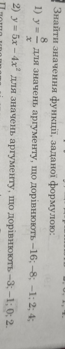 просто подставляете в формулу вместо х данные числа. например. при х=-16 получите у(-16)==8/(-16)=-1/2;