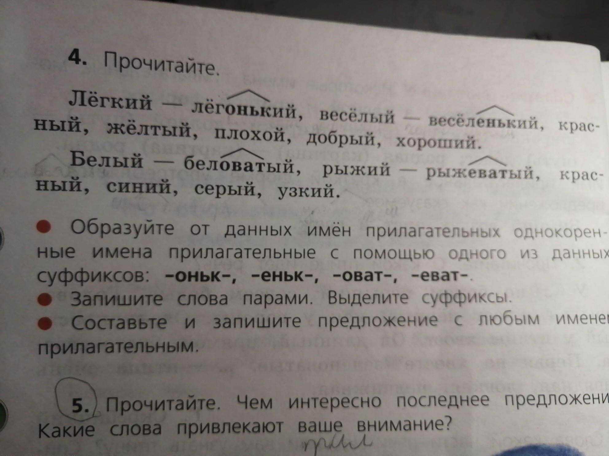 p.s там нужно сразу с суффиксом! красный- красноватый, добрый-добренький
